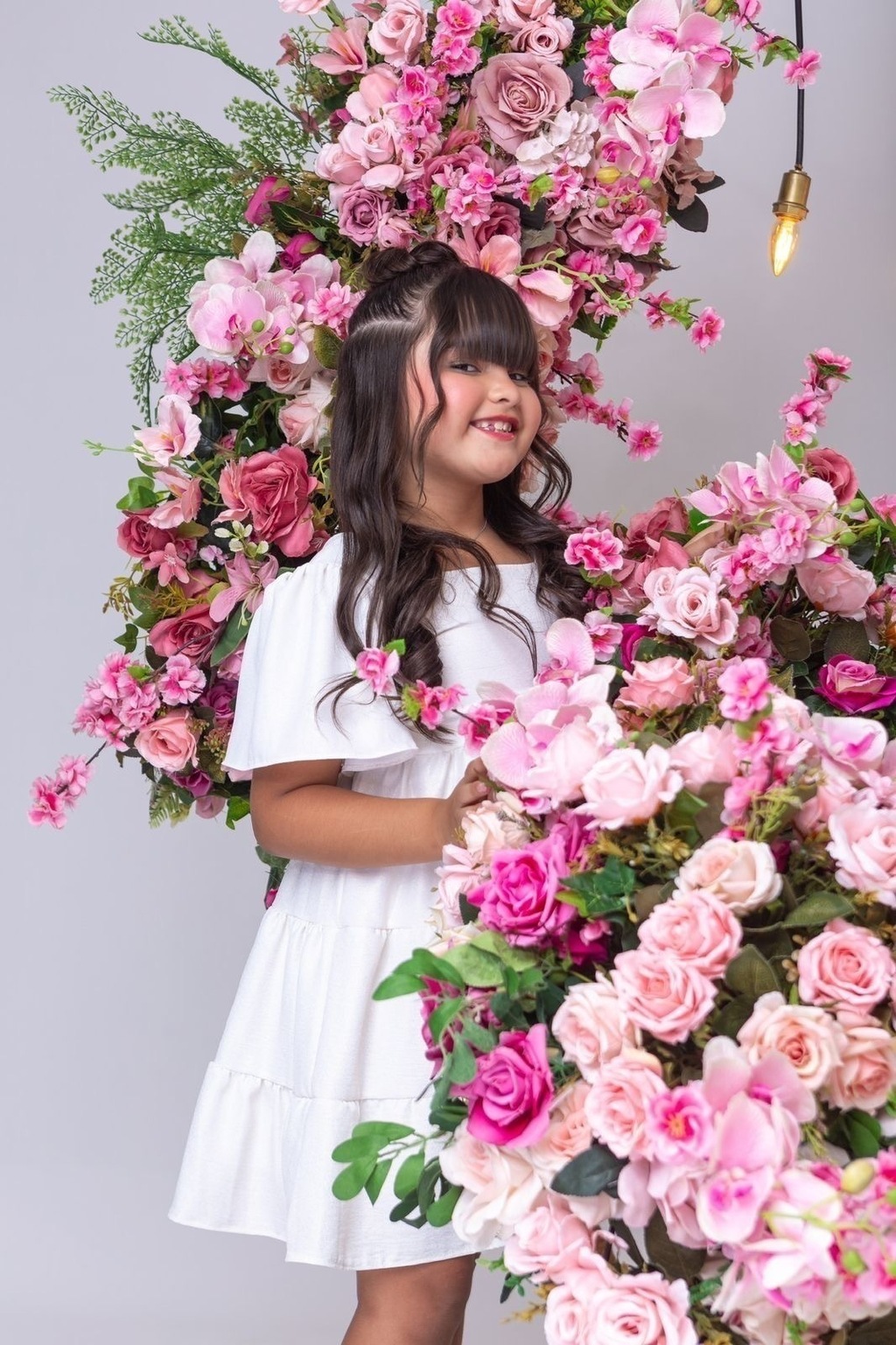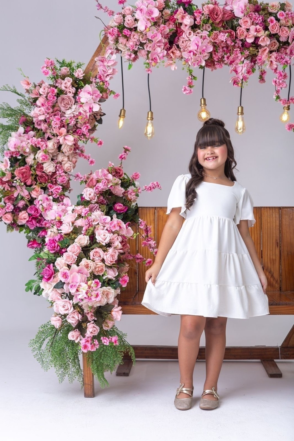 Conforto: Com um tecido leve e macio, o Vestido Tata garante que sua filha se sinta confortável e à vontade.